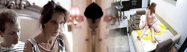 Step-mother stepson on the same couch risky creampie