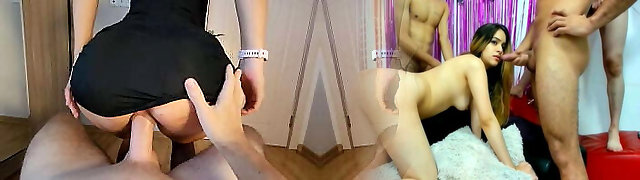 Chocolate senorita with glasses still rides the dick like a teenie