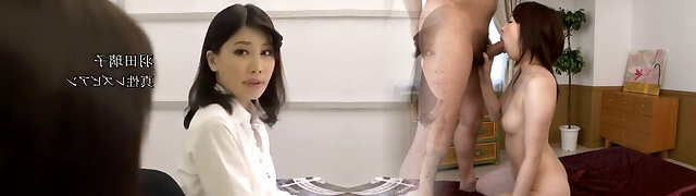 Mature Japanese mom sucking a hot young cock hard