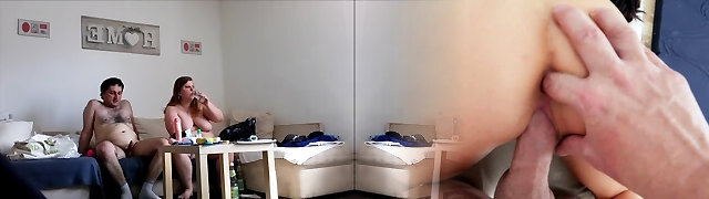 Lesbian with cucumber plumbing fat girlfriend, big ass doggystyle. POV.