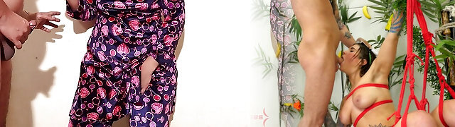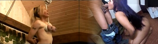 Two Hoes Tied Up In Ropes And Suck Dick