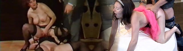 Two busty and vivid blondes have hard BDSM group fuck-fest with two lewd and kinky middle aged guys