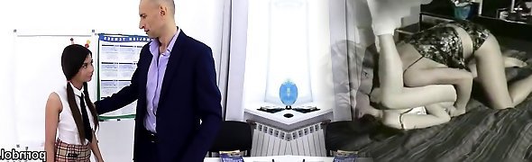 TrickyOldTeacher - Brunette student gives mature teacher cock blowing and fucks him