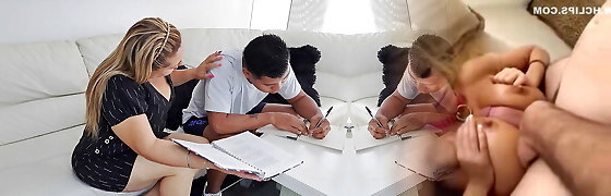 I help my stepson with his homework, his man sausage distracts me and I end up sucking it
