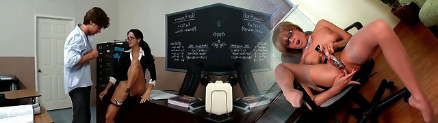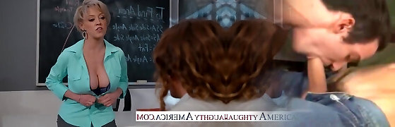 Big-chested mature educator Sara Jay seduces student to drill her right on the table