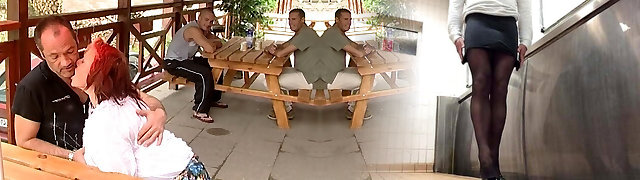 German cougar Alexandra Wett takes bukkake after gangbang outdoor