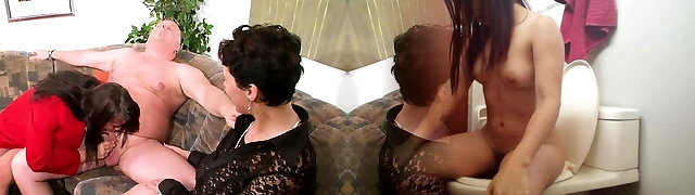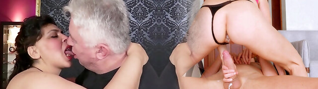 Threesome bang-out with old and young