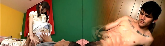 Japanese mature wife thinks of husband, but humps 2 other dudes