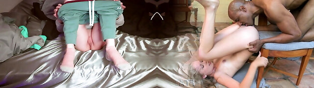 Plowing the mouth of step daughter while she chats to mom on her cell phone. phone.