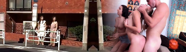 Two German Milfs enjoy to move a hard cock from one deep throat to another before sharing it inside their shaved pussies