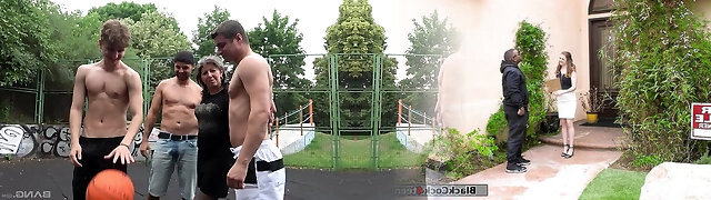 Amateur granny gets fucked in gang-bang on the basketball court