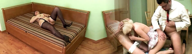 Russian mature gang-fuck blowjob