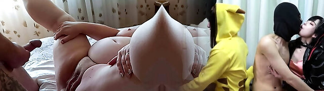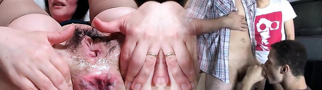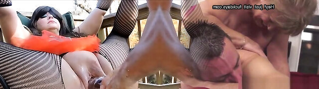 Gaping Ass-fuck Granny in Stockings Fucks Three