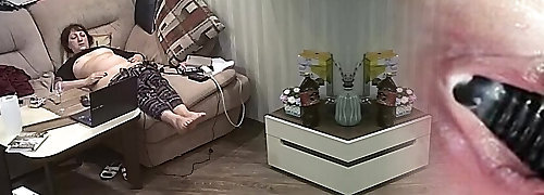 Quick masturbation of my mom on couch. Hidden cam