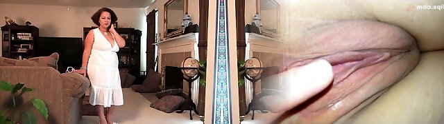Mature housewife Lara takes off her taut dress and plays with fucktoys