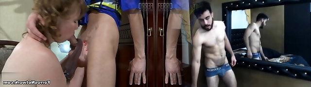 Son-in-law could not resist and spunk on the masturbating mother-in-law