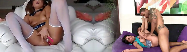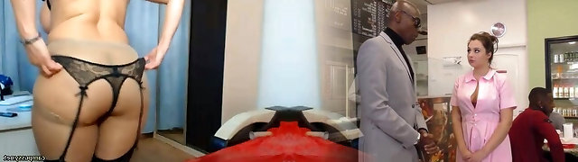 Sissy Neri with humungous tits wearing nylon stockings gets fucked