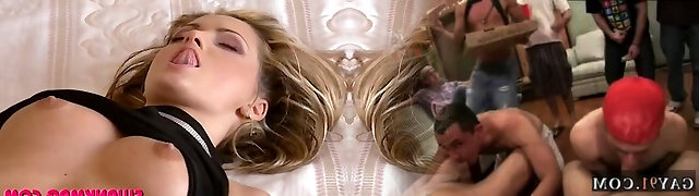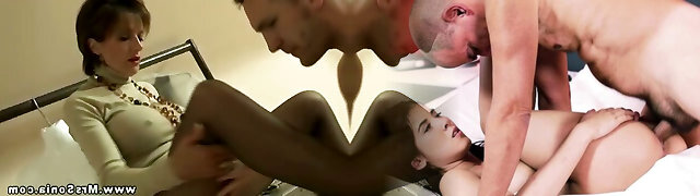 Red-hot n sexy slut enjoys dick sucking and pussy slurping with two mature guys before getting fucked in both crevices by them