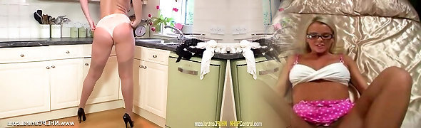 Sizzling Housewife Eva Johnson Strips and Opens Long Nylon Legs for Edible Wank