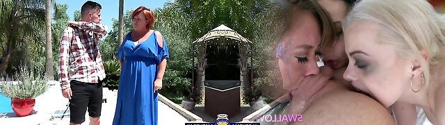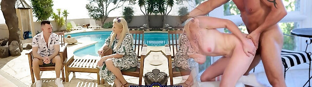 Two Grannies And Two Dudes Smash By The Pool