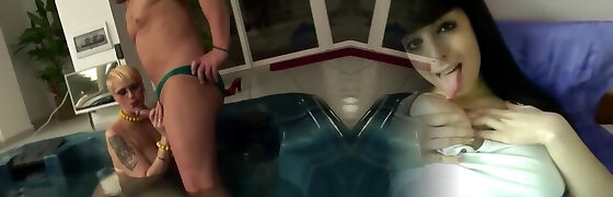 Mature Japanese women hook up in a jacuzzi for a romp session