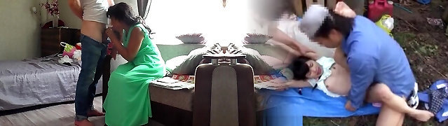 Step mother and stepson share a sofa in a hotel room - Are you hard step son?