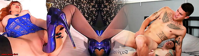 Redhead mature Red Hard-core fucks her heels and a dildo