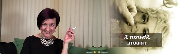 Ravishing mature babe with smoothly-shaven pussy rubbing it in an robust solo shoot