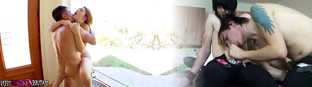 Lovely teen and mature couple threesome sex