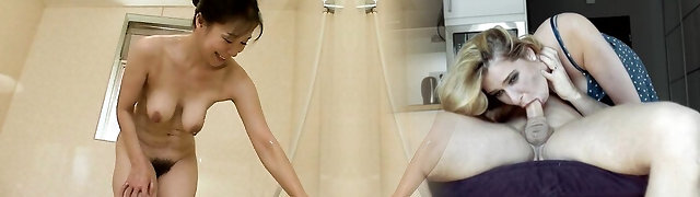 Sexy Chinese mom makes her son cum while he sleep then suck and bang son friend in shower HD