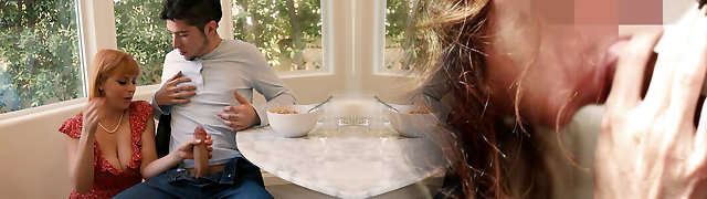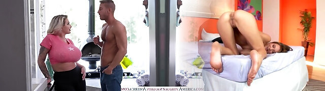 Mylf - Blond Stepmom Reveals Her Enormous Juggs And Lets Her Athletic Stepson Play With Her Body