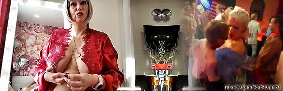 Kinky mommy with enormous boobs receives double facial