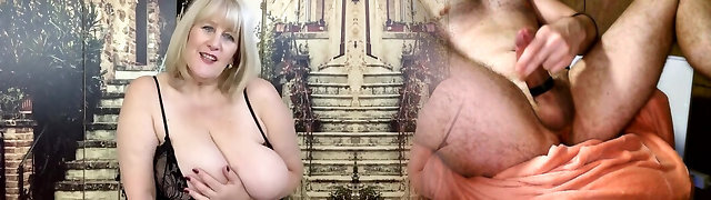 Big breasted brunette mature jerks cock