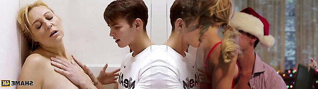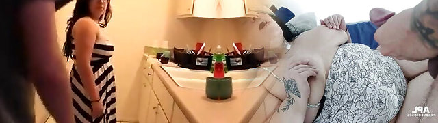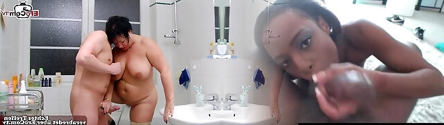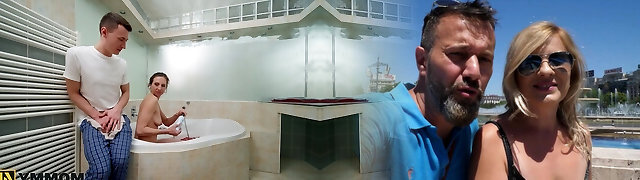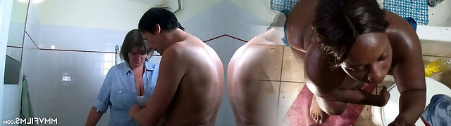 My stepmother gives me a rich blowjob in the bathroom before I go to a party. Part Trio. I love her mature fuckbox