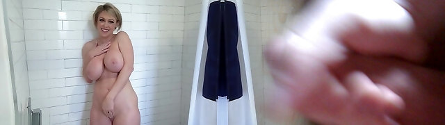 Big Hooter MILF Comforts Son with Tit Job and Plumb in the Shower