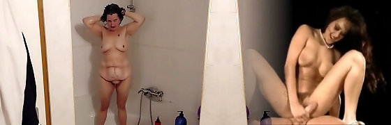 Homemade movie of plump wife Miranda Steel masturbating in a shower