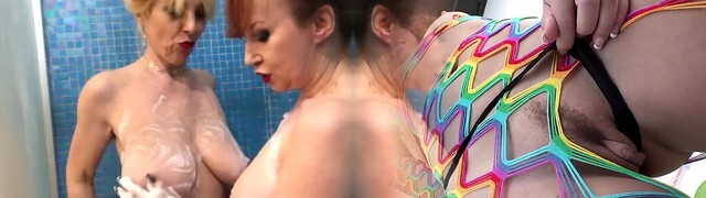 Chubby mature blonde MILF Alex Chance blows in the shower