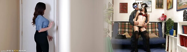 Step mummy waited husband from bathroom, but step son make surprise fuck and facial
