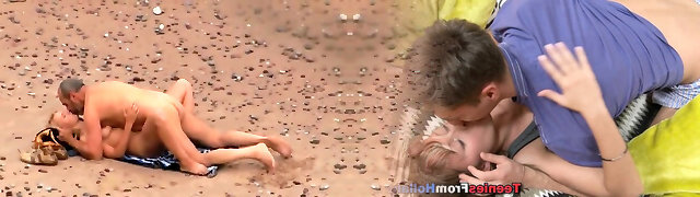 STEP Mother FUCKING ON A NUDUISTIC BEACH WITH STEPSON WHILE Spouses SWIM.