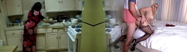 Stepmom fucked by her son-in-law in kitchen-- Stepmom satisfy her Stepson by giving him her Big Booty