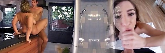 Naughty America - Busty blonde Milf Ryan Conner finds her '_s friend peeping on her, then invites him in for a fuck and deepthroat
