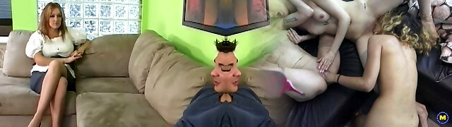 Hot orgy with bikini dressed in mature lesbians