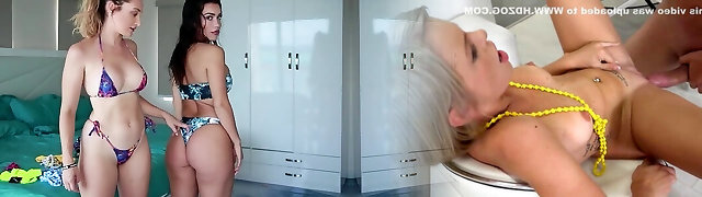 Trampy big-tit blonde MILF fucks hard-dick while bikini shopping