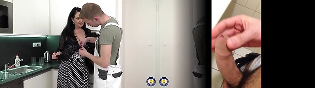 Mature stepmom Dee Williams blasted watching anal porn by her stepson