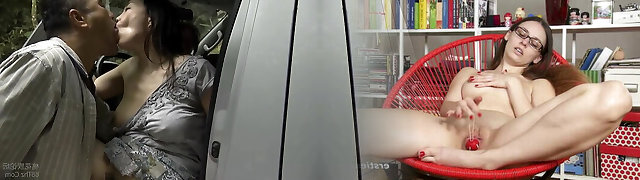 Hot japanese mature milf spreads out legs in a car for labia plowing
