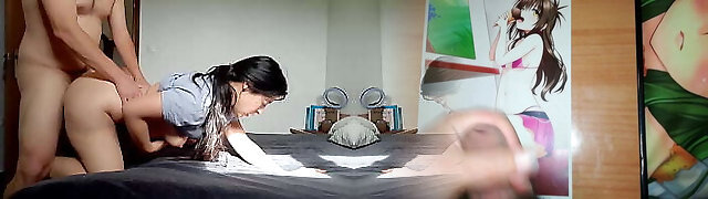 Stepson gives his fabulous Chinese MILF mommy more than 10 creampies under dad's nose