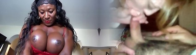 Gigantic black dick in mouth and orgasmic muff of a mature blonde