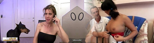 Bossy grannie and her two young home slaves