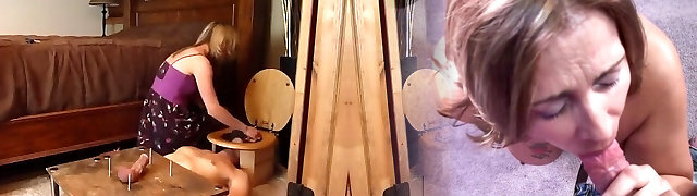 Mature blonde wife torturing her submissive man