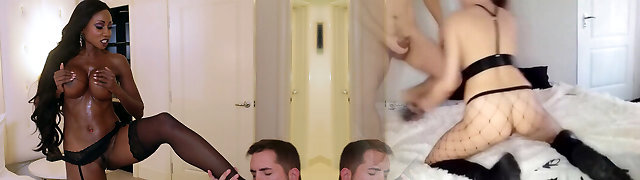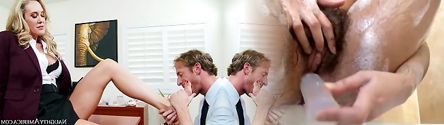Black lover worships beautiful super-sexy legs of mature mistress Brandi Love